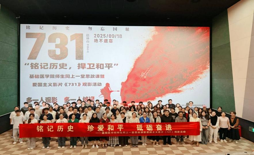 铭记历史,观看爱国主义教育影片。学院组织全体师生集中观看爱国主义教育影片《731》,警示师生铭记历史,珍爱和平。观影现场气氛庄严肃穆,师生们接受了一次深刻的思想洗礼,激励青年医学学子将悲愤化为前进动力,恪守“健康所系、性命相托”的医学生誓言,为守护人民健康、助力民族复兴贡献青春力量。