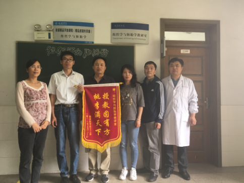 5月24日上午,临床医学专业2018届毕业生代表将绣有“授教固有方 桃李满天下”的锦旗送到英国上市官网365组织学与胚胎学、病理生理学等教研室,感谢英国上市官网365教师对学生的培育之情。任课教师代表接受了这富有深刻意义的锦旗。