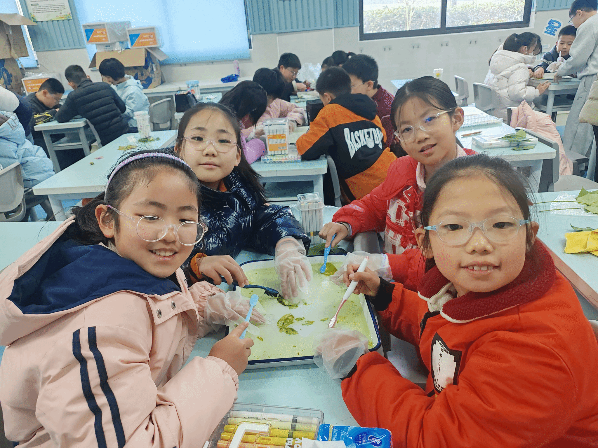随后,在党员志愿者的指导下,孩子们有序开展叶脉书签制作活动。志愿者详细演示了树叶脱肉、清洗、晾干、染色等步骤,手把手教孩子们处理树叶、保留完整叶脉。孩子们专注地操作每一个环节,亲手将普通的树叶转化为精美的书签,脸上洋溢着成就感。