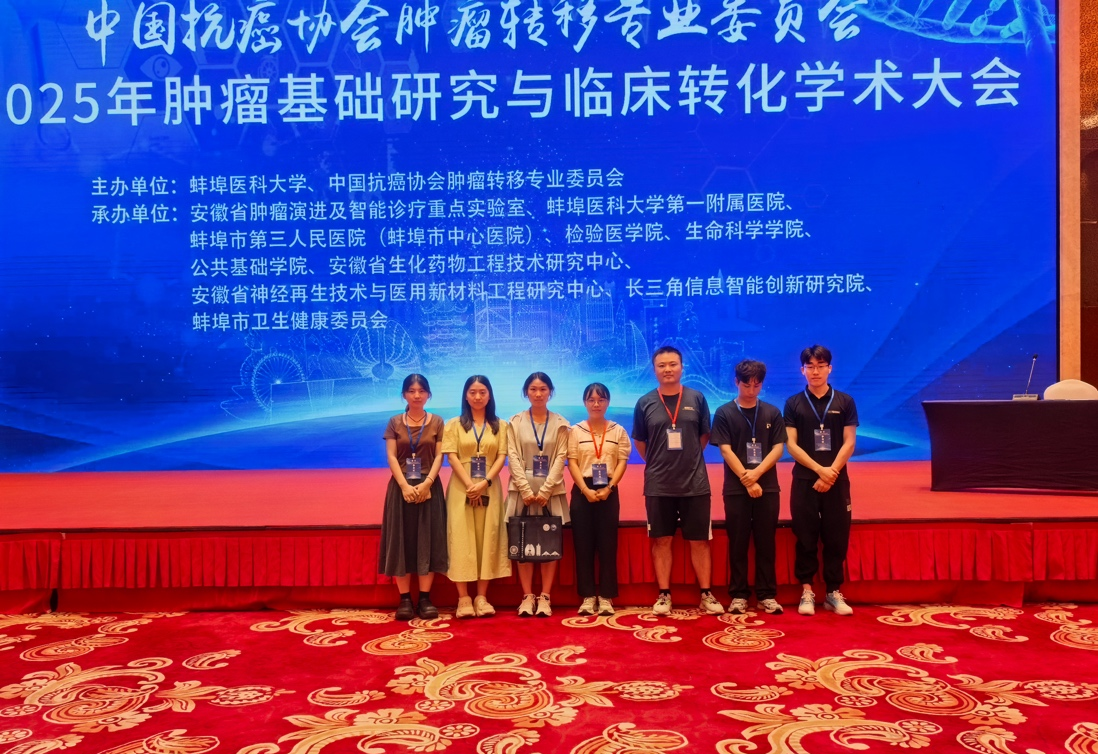 近日,由蚌埠医科大学和中国抗癌协会肿瘤转移专业委员会联合主办的2025年肿瘤基础研究与临床转化学术大会在蚌埠市召开,大会吸引了来自全国肿瘤研究领域的众多专家学者、临床医生及科研人员齐聚一堂,交流探讨学术最前沿知识。学院组织相关教研室师生一行7人参加大会。