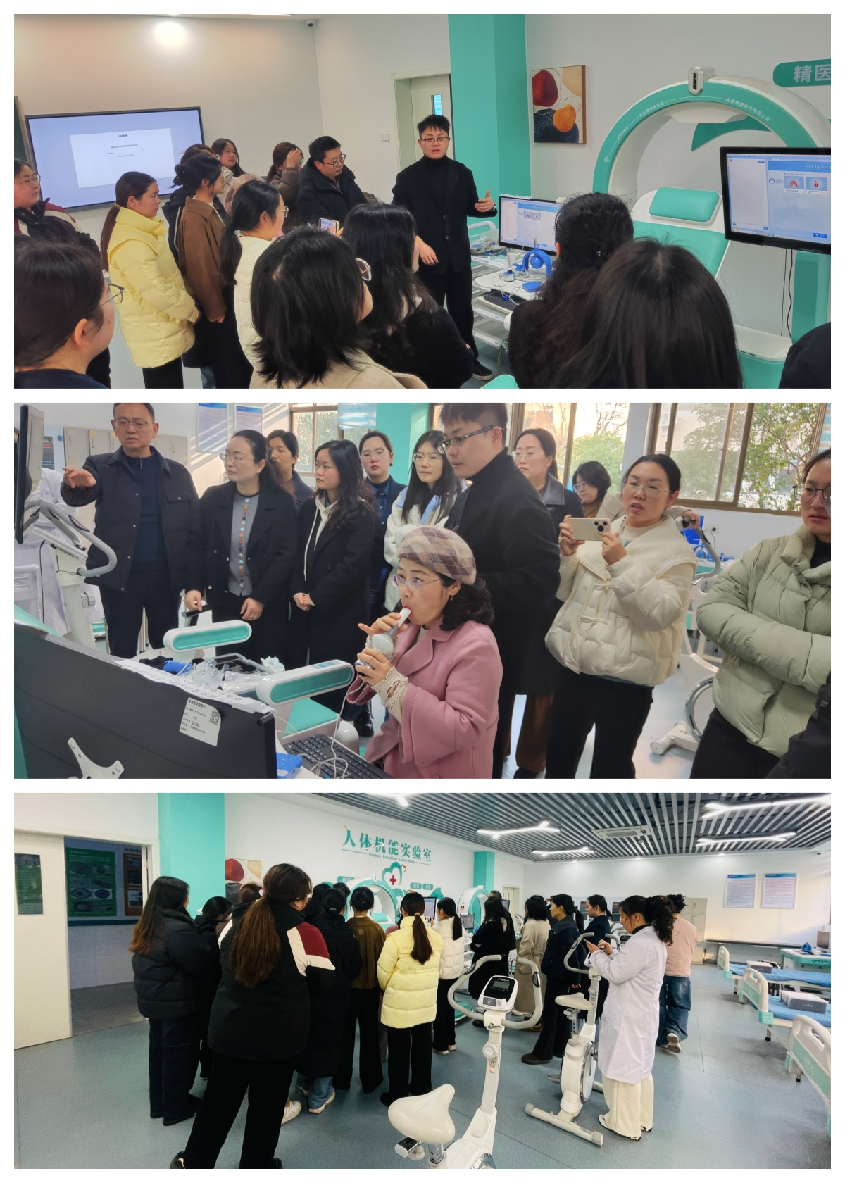 作为基础医学实验教学的创新课程,《基础医学综合实验1》以人体实验为核心特色,紧扣学科前沿发展方向,旨在通过实操训练搭建基础理论与临床应用的桥梁。本次培训精准对接课程教学需求,聚焦人体肺功能检测、人体动脉血压测量、人体神经肌肉电刺激三大核心实验模块,特邀专业设备厂家工程师全程授课指导。培训现场,工程师首先对实验仪器的核心构造、功能参数及操作规范进行详尽讲解,并通过动态演示直观呈现仪器使用流程;随后围绕三大实验模块,逐一拆解实验原理、操作步骤、数据采集与分析方法,重点强调实验安全要点与常见问题解决方案,确保参训师生全面掌握教学核心内容。