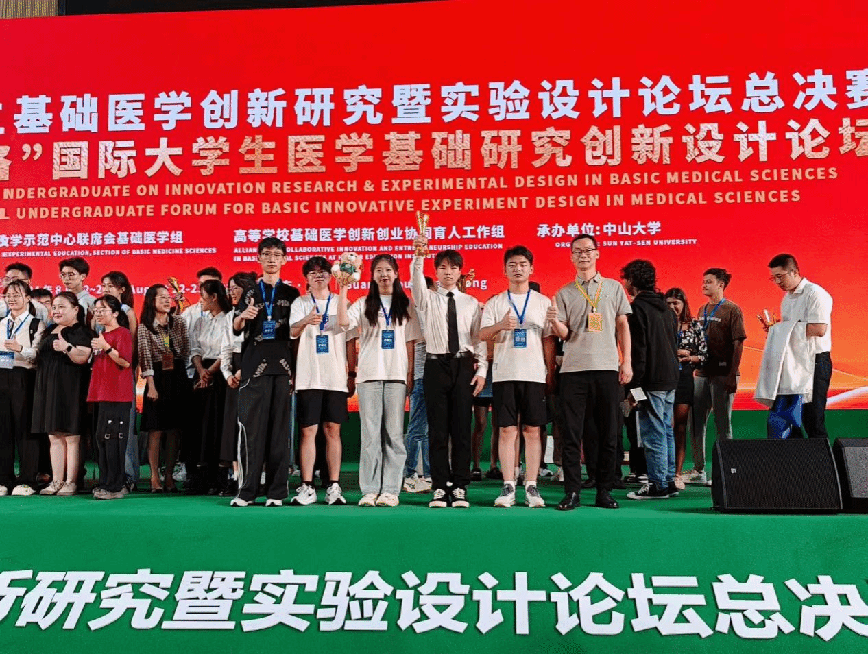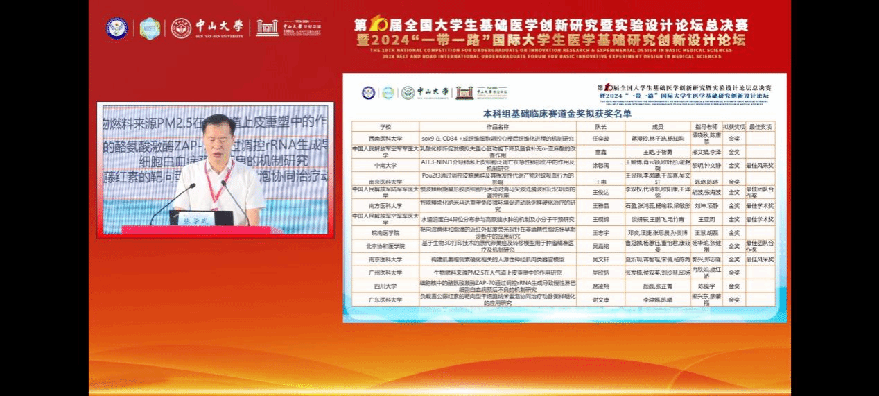8月22日至25日,“第十届全国大学生基础医学创新研究暨实验设计论坛暨2024‘一带一路’国际大学生医学基础研究创新设计论坛”总决赛在中山大学举办,我校喜获本科组基础临床赛道金奖,实现了在该类赛事上的历史性突破,标志着我校基础医学创新研究和实验设计水平迈上了新台阶。