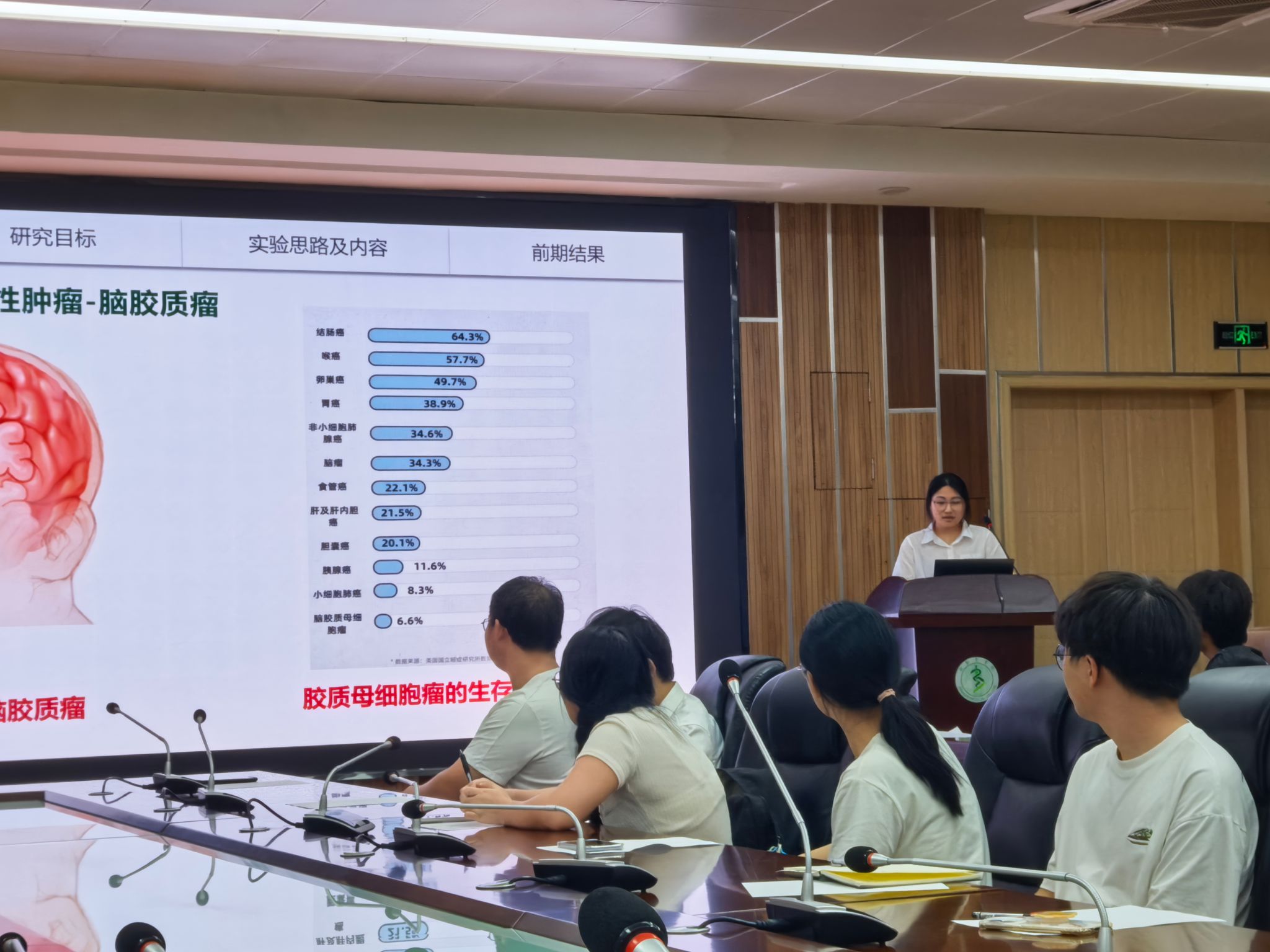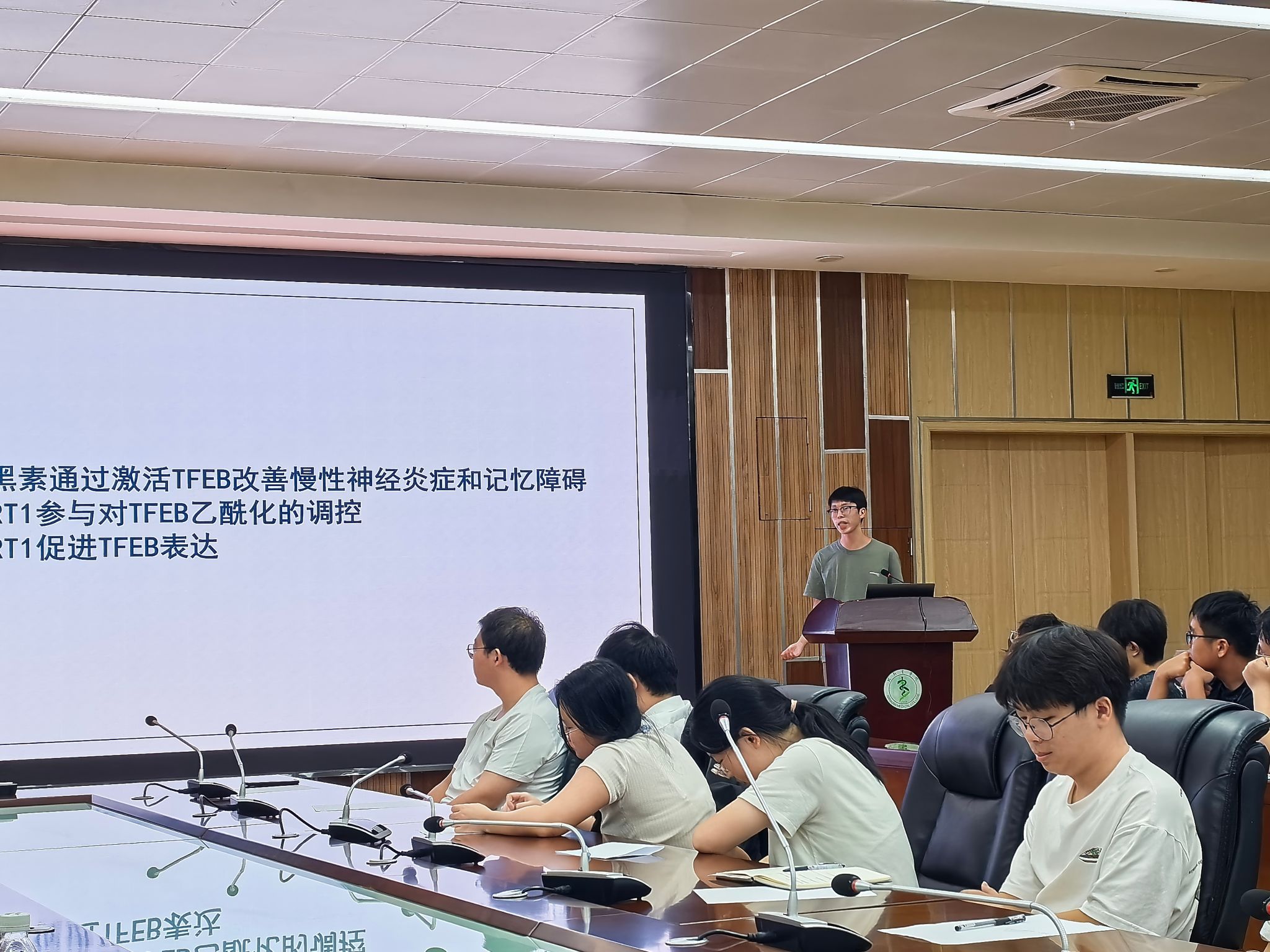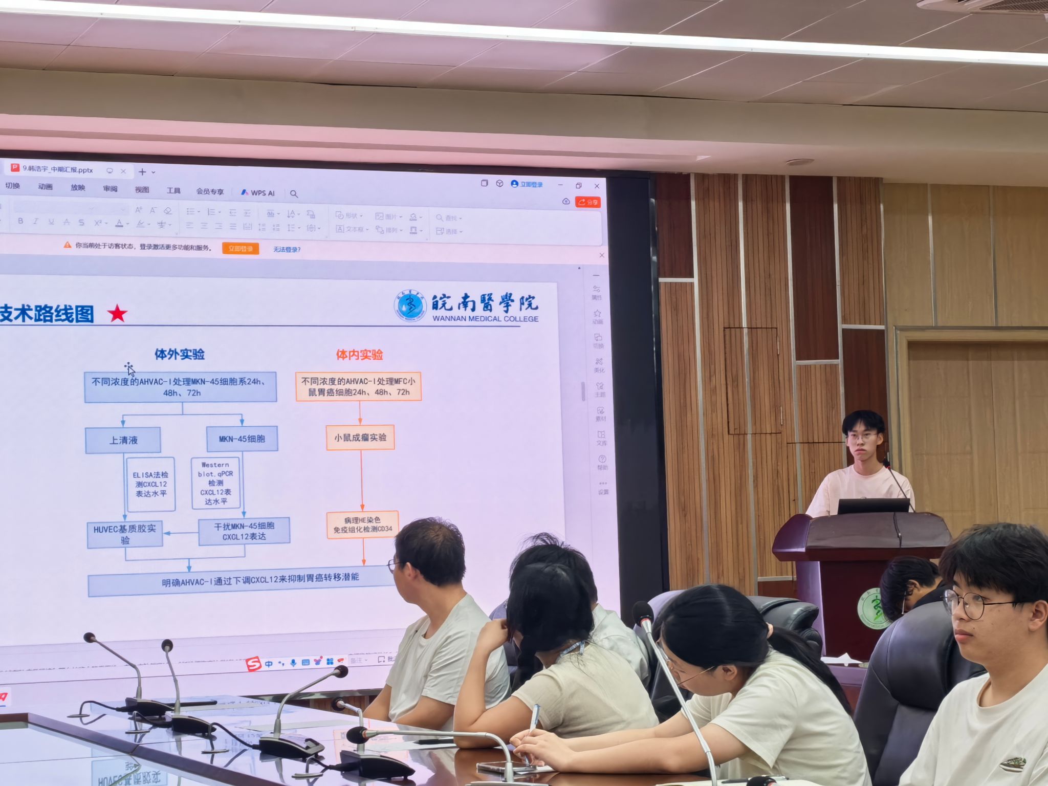 汇报环节中,12名2023级优秀本科生代表依次上台进行限时7分钟的PPT成果展示。汇报同学准备充分,从项目立项依据、前期研究进展、已获阶段性成果、遇到的问题及解决方案、下一阶段计划等方面进行了全面汇报,内容涵盖分子生物学、病理生理学、免疫学等多个基础医学前沿领域,展现了同学们严谨的科研态度和初步的科研能力。科研导师代表现场就每个项目的创新性、可行性及后续研究方向进行了精准提问和细致点评,为同学们进一步完善研究方案提供了极具价值的指导。