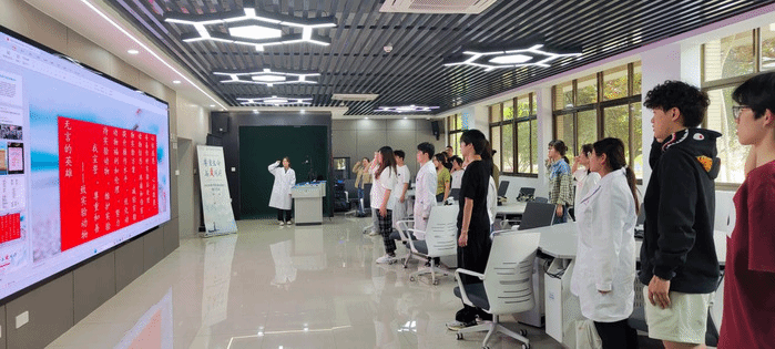 活动当天,机能中心党支部党员教师介绍了实验动物对于人类生命科学研究的贡献以及在医学实验教学过程中发挥的巨大作用,强调了善待实验动物的“3R”原则,倡导大家在平时的实验课中秉持敬重生命的意识,维护实验动物的生命尊严。同学们共同观看纪录片《实验动物简史——生物医学发展史的缩影》,了解生物医学的发展与实验动物的使用之间密不可分的联系。随后,同学们进行集体宣誓,心存感恩和敬畏,致敬无言的动物英雄。