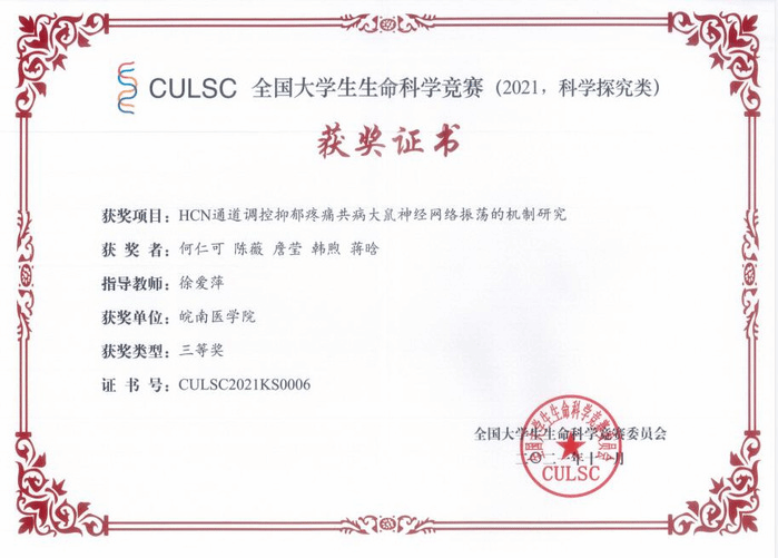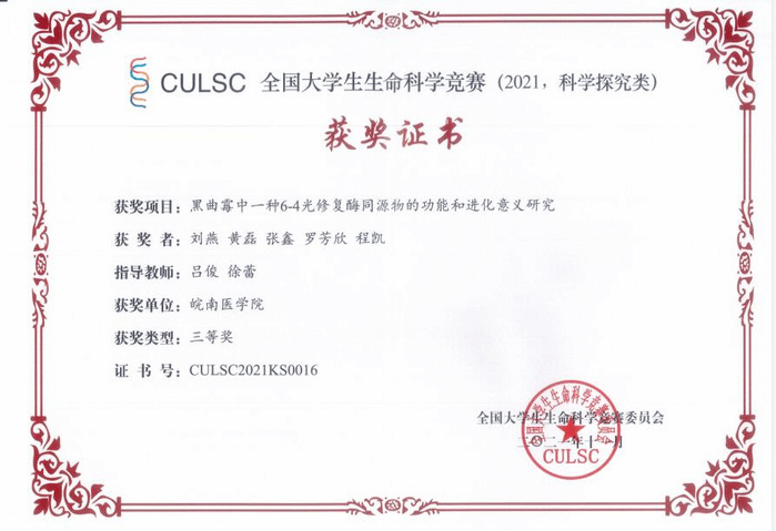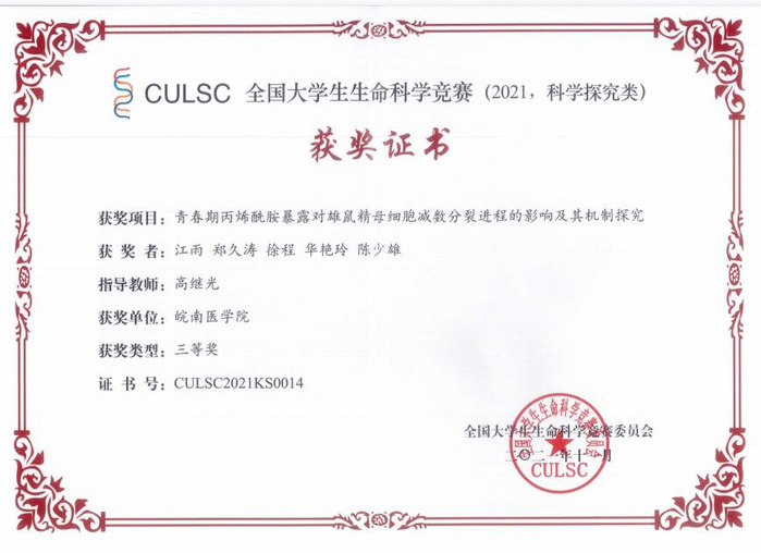 我院教师指导学生在全国大学生生命科学竞赛及安徽省大学生生命科学竞赛中喜获佳绩
