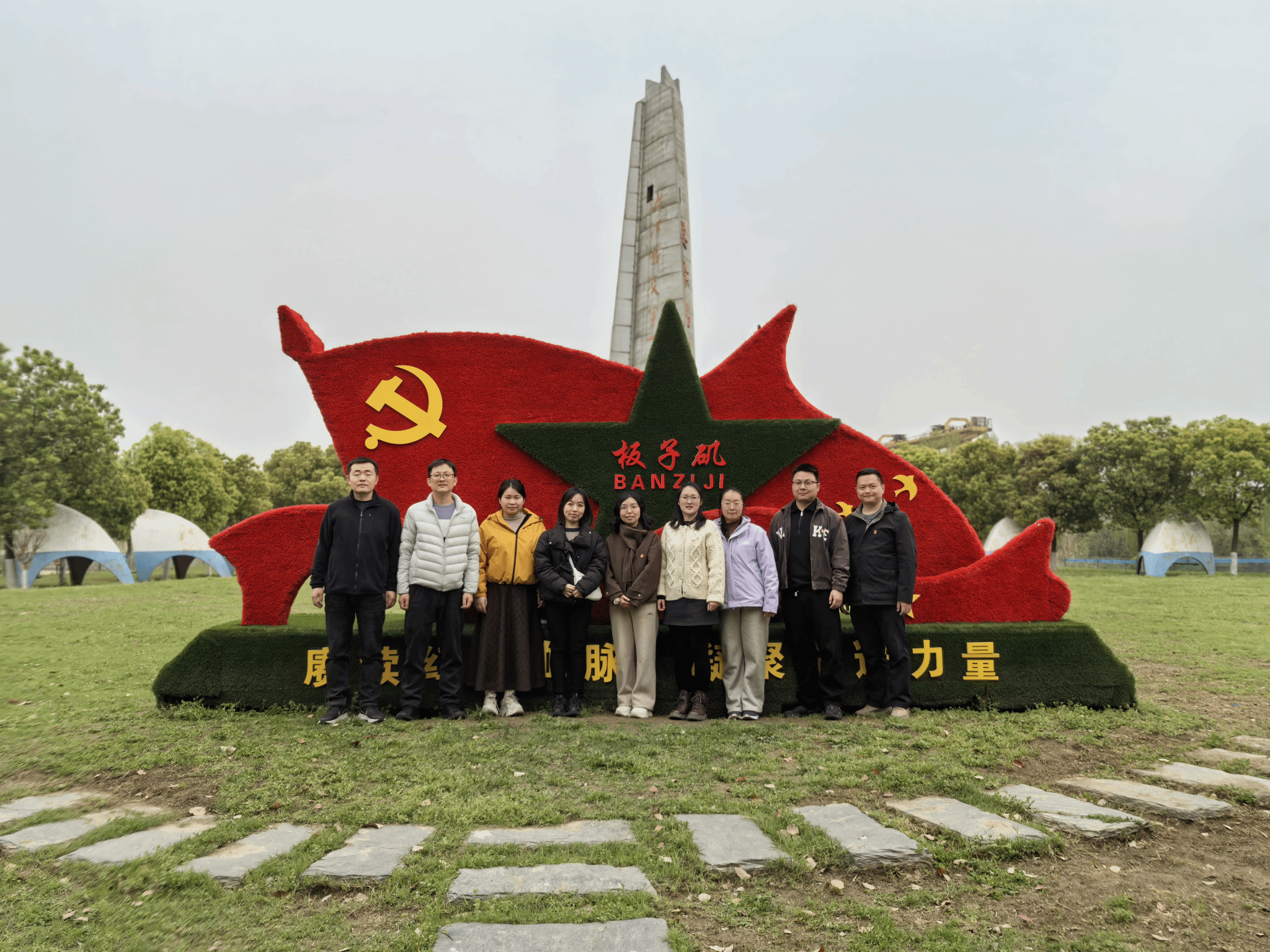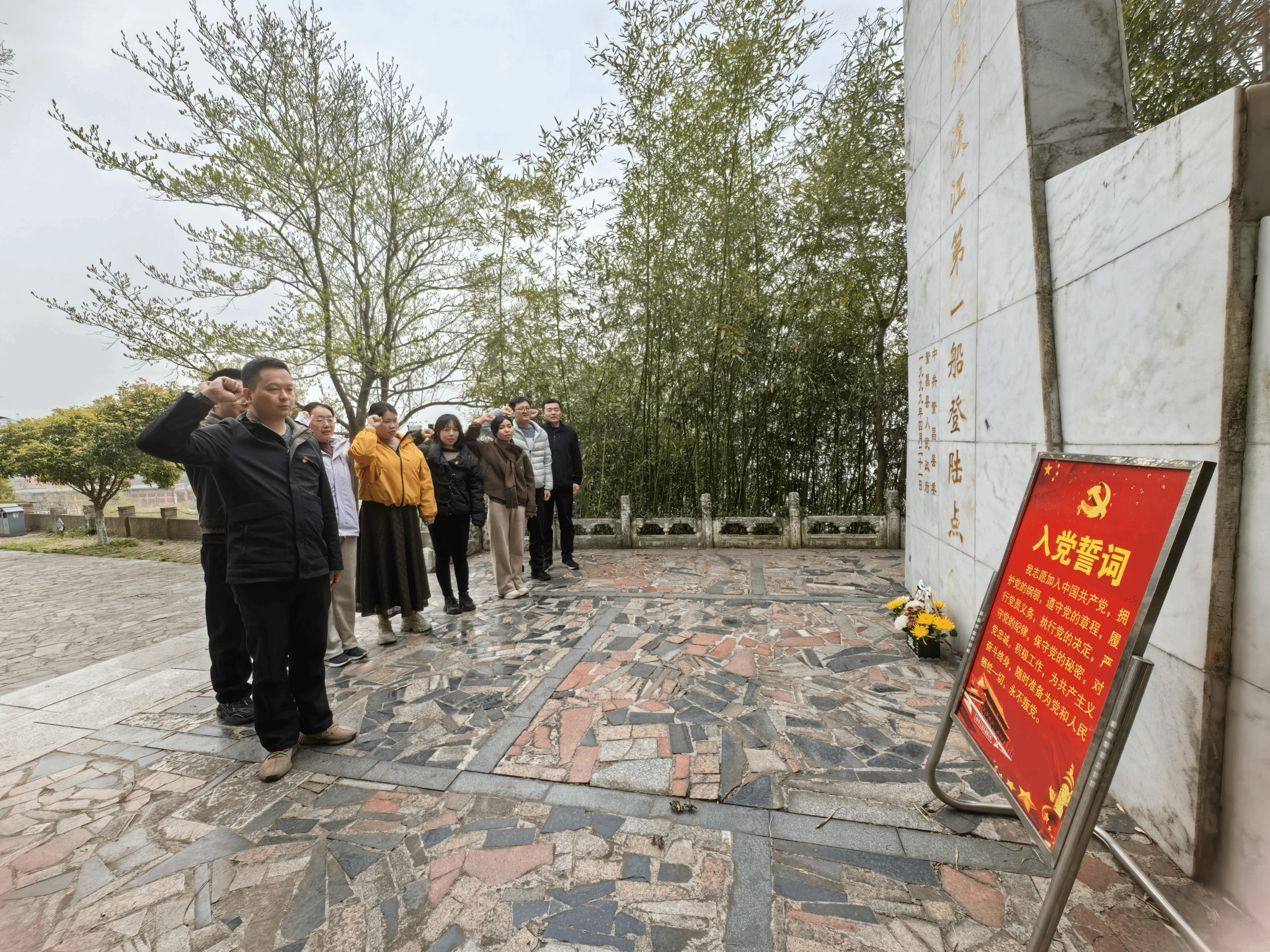 在渡江战役纪念碑前,全体党员庄严肃立,向英勇牺牲的革命先烈敬献花篮。全体人员肃立默哀,深切缅怀先烈们为民族解放事业作出的伟大牺牲。纪念碑前,全体党员高举右拳,在支部书记带领下重温入党誓词。铿锵誓言回荡在长江之畔,激荡着每一位党员的赤诚之心。副书记林爱琴表示:“每一次重温誓词都是一次精神洗礼,先烈们用生命诠释了对党的忠诚,我们更要以实际行动守护信仰、服务人民。”