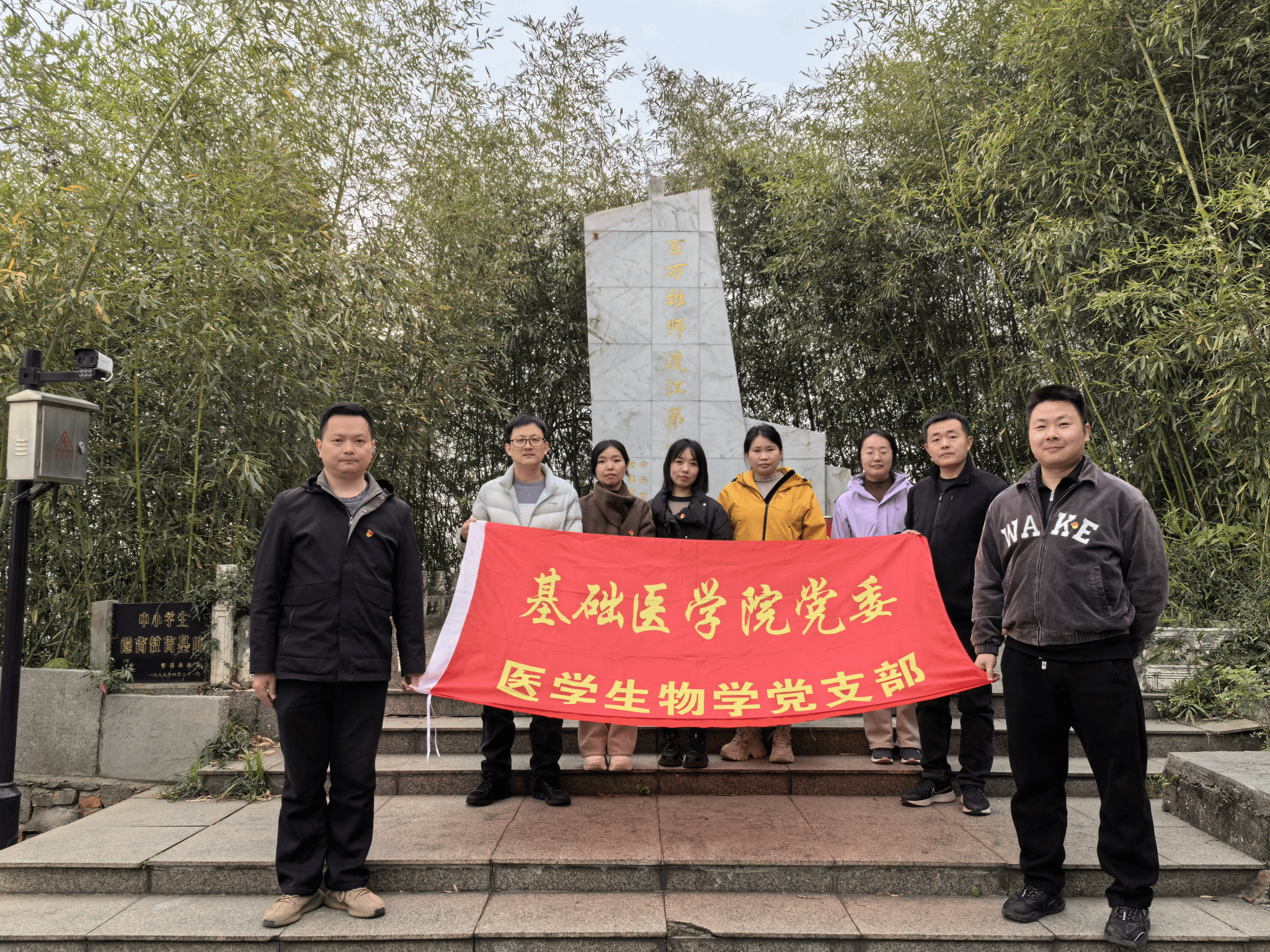 为传承红色基因、深植家国情怀,3月30日,医学生物学党支部全体党员前往繁昌县渡江战役第一登陆点——板子矶红色教育基地,开展“清明祭英烈”主题党日活动。活动以祭扫追思、重温誓词、参观学习、专题党课等形式,激励党员赓续革命精神、践行初心使命。
