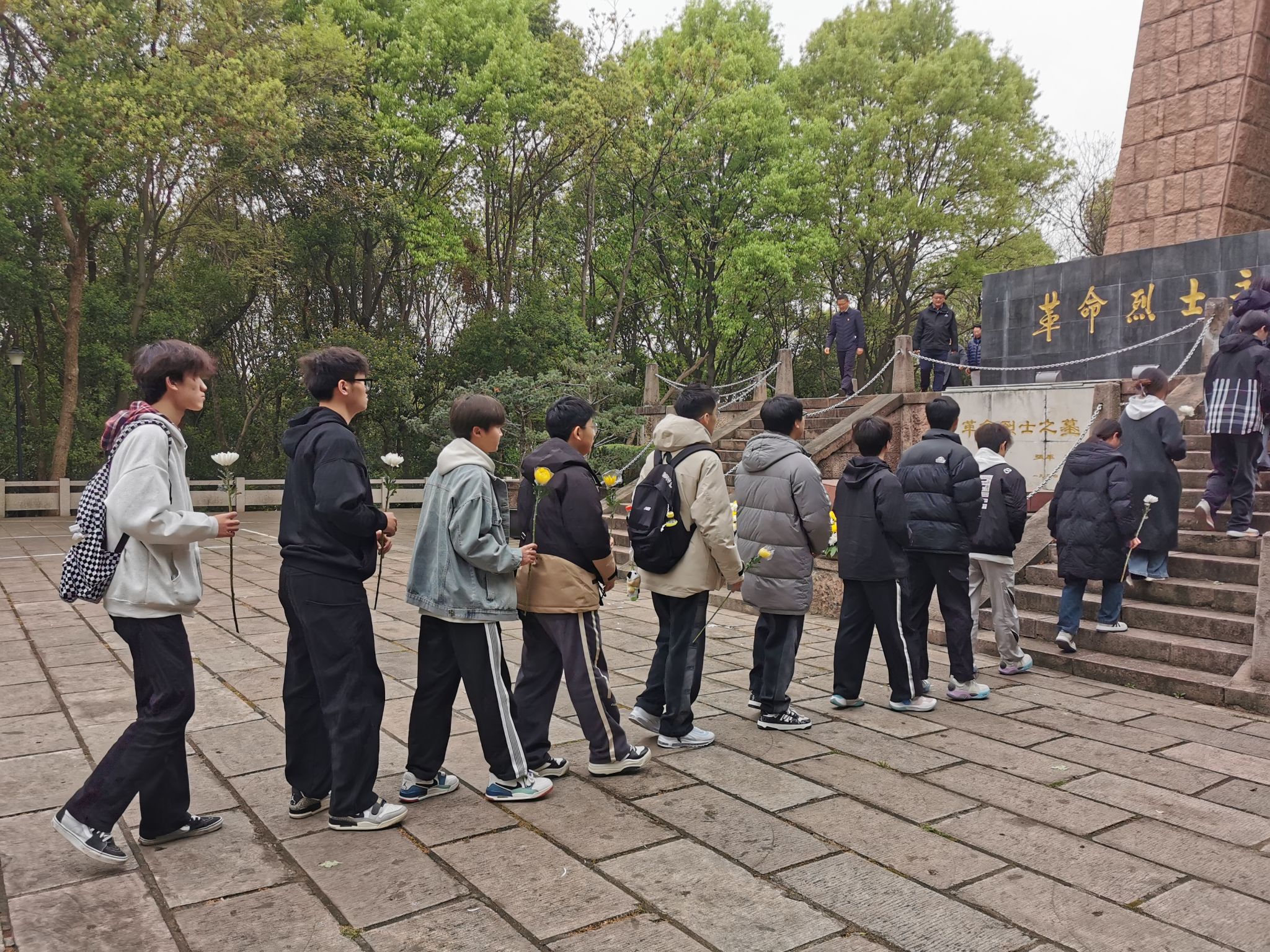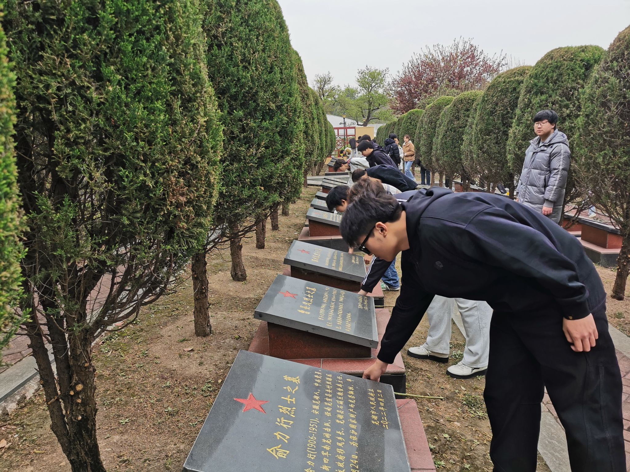 上午9时许,师生们身着素装,手持白菊,列队肃立于烈士纪念碑前。全体师生向为民族独立、人民解放事业英勇献身的革命先烈默哀致敬。师生代表缓步走向纪念碑,依次献花并绕碑瞻仰,以无声的仪式传递对先烈精神的崇高敬意。