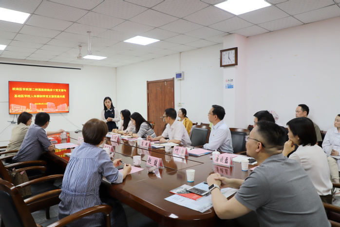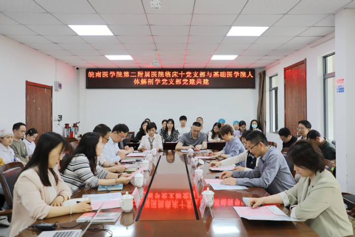 为深入学习贯彻习近平新时代中国特色社会主义思想,进一步推进省级样板党支部创建培育工作,提升基层党组织战斗堡垒作用,加强党建促事业发展成效,5月12日下午,人体解剖学党支部赴学校第二附属医院与临床十党支部开展联合共建活动。第二附属医院党委书记应斌,组织部副部长、党校常务副校长任苔蓉应邀出席,临床十党支部、实习生党支部部分成员参与此次活动。