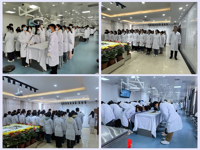 解剖学是医学的重要专业基础课程,也是医学生较早接触的富有人文和生命医学教育特色的课程,蕴含丰富的思政元素。为持续推进课程思政与教书育人深度融合,深入挖掘遗体器官捐献教学素材,讲好遗体器官捐献者的故事,打造人体解剖学学科特色课程思政体系,2~3月份支部组织全体教师参与解剖学第一课---致敬无语良师、春分缅怀诵读活动、线上线下参与遗体告别仪式、现场见证志愿者办理遗体捐献、校园植树等形式多样的活动,用实际行动践行立德树人的根本任务,培养医学生具有“敬佑生命、救死扶伤、甘于奉献、大爱无疆”的新时代医疗卫生职业精神,助力推动学校具有医学特色的课程思政体系良性发展。