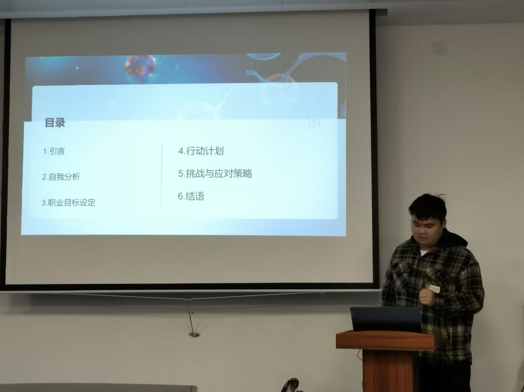 比赛现场气氛热烈,选手们依次登场,通过精美的 PPT 和生动的演讲,阐述了自己对未来职业的清晰规划。选手们深入剖析自我,结合专业优势与兴趣爱好,对职业目标进行了精准定位,并详细制定了短期、中期和长期的实施计划。