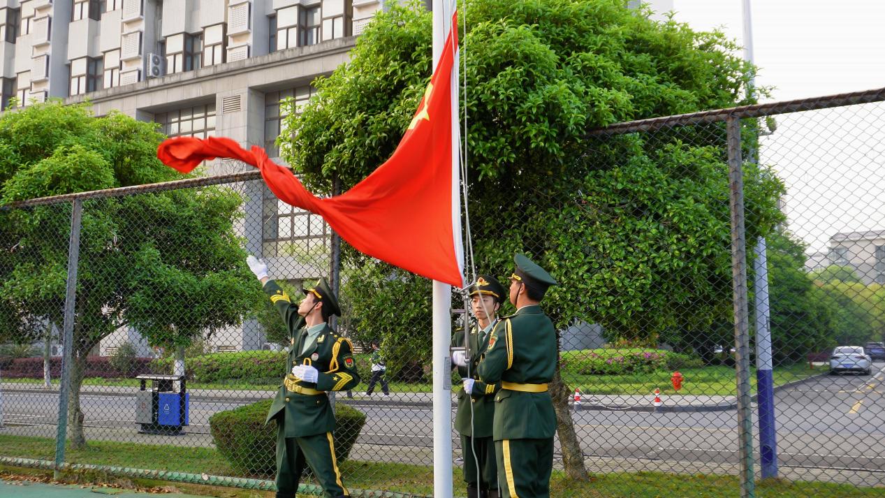 清晨的校园朝阳初升,庄严肃穆。7点10分,升旗仪式正式开始,国旗护卫队迈着铿锵整齐的步伐护送五星红旗入场。伴随雄壮的《义勇军进行曲》,五星红旗冉冉升起,全体师生肃立注目,歌声响彻校园。庄重的氛围激荡着每一位师生的赤子之心。
