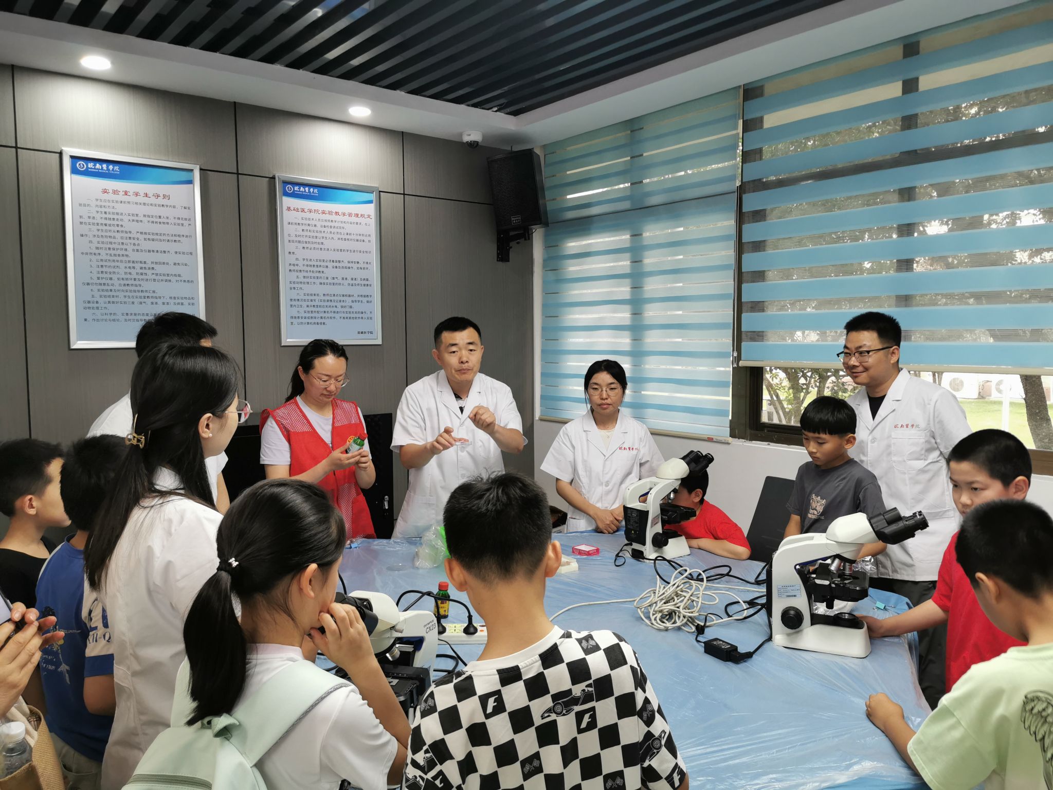 7月10日上午,由学院关工委联合芜湖市弋江区中南街道关工委举办的2024年暑期科普活动顺利举办,共吸引了20余名中小学生参与,通过一系列丰富多彩的医学知识科普讲座、实验操作和实地参观,让孩子们更直观的接触医学知识,培养健康的生活习惯,激发他们对科学的热爱和探索欲望。