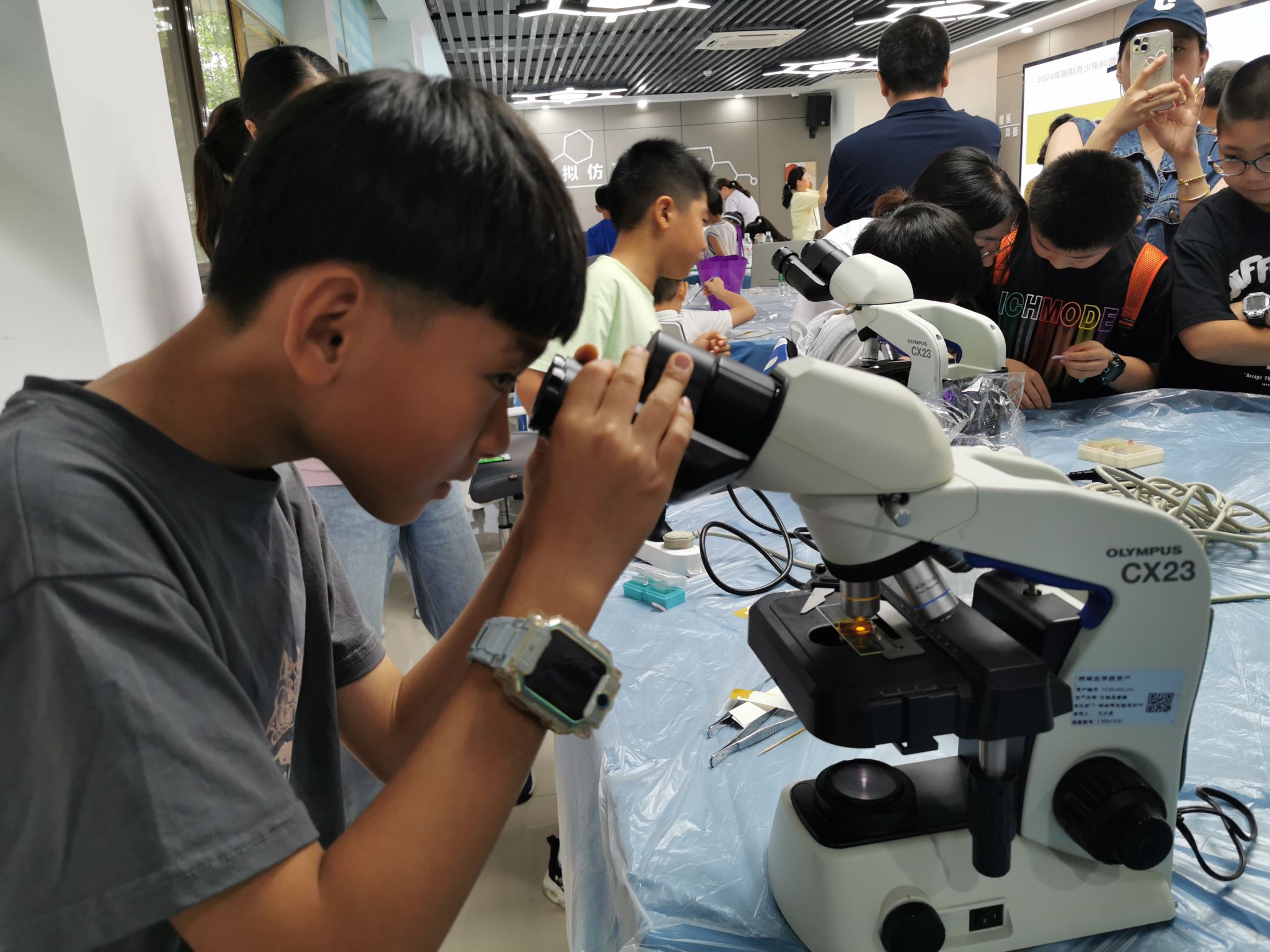 除了医学知识科普讲座外,活动还特别设置了实操演练环节。在专业老师的指导下,小朋友们自己动手绘制小动物彩图,制作洋葱切片标本,通过显微镜观察红细胞、洋葱表皮细胞等微观世界的细胞形态,体验了医学研究的乐趣。