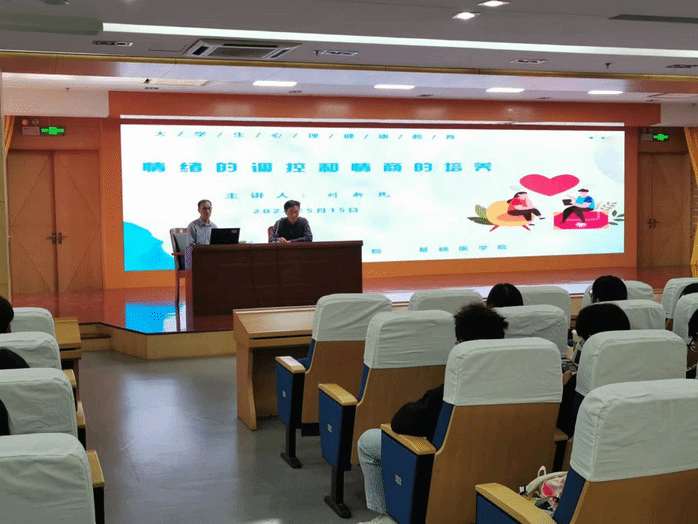 5月15日下午,我院关工委联合医学院信息学院关工委邀请刘新民教授作“情绪调控与情商培养”为主题的心理学讲座,讲座旨在提高大学生对心理健康的认识,帮助大学生更好地应对学习和生活中的压力,促进身心健康全面发展。讲座由医学信息学院党委书记马同军主持,共计150余名本科生到场聆听。
